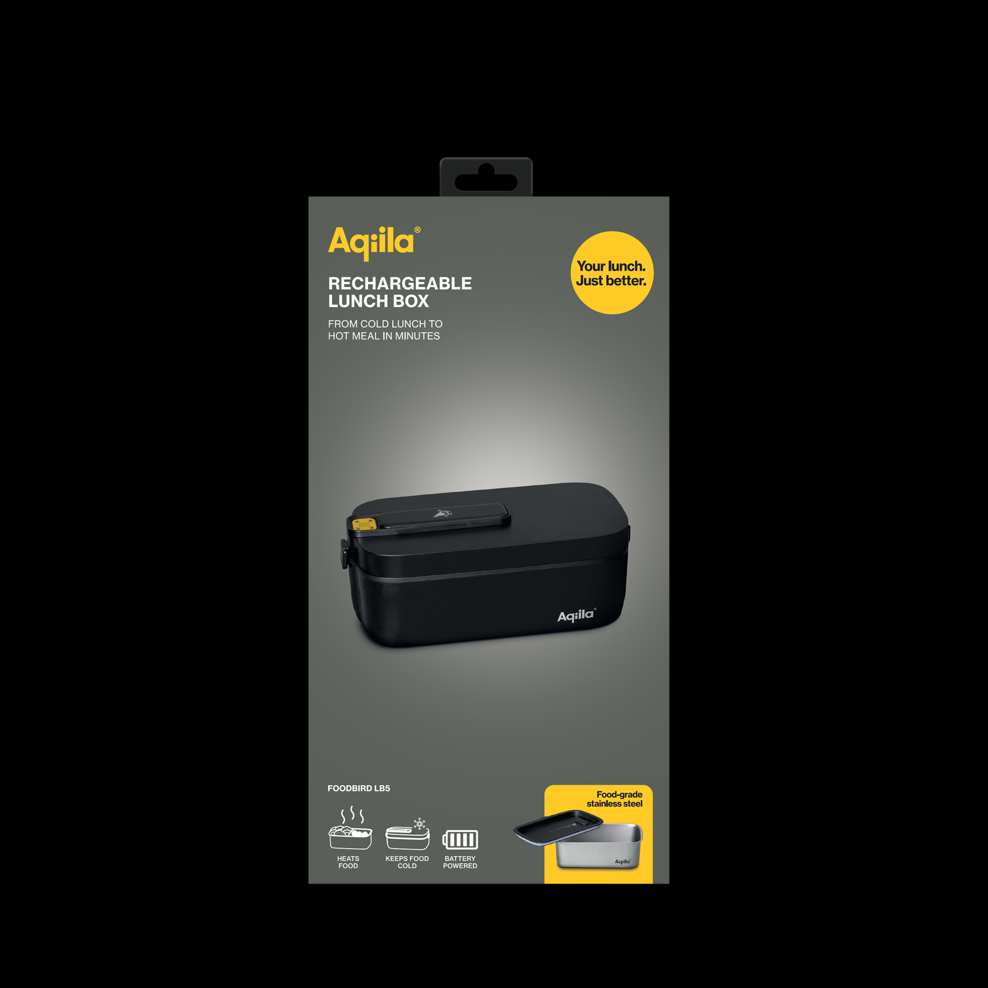Foodbird er en oppladbar matboks som lar deg varme maten direkte i boksen, uansett hvor du er. Det er også mulig å bruke det medfølgende kjøeelementet for å holde maten kald og frisk lenger. Enkel å rengjøre og vedlikeholde, samt lett å bruke.Fra kald lunsj til et varmt måltid uansett hvor du er – Ikke flere kjedelige lunsjer med Foodbird LB5. Med en kapasitet på 1 liter og et integrert varmesystem kan du varme måltidet ditt med bare ett knappetrykk. Det oppladbare batteriet driver et 60 W varmeelement og gir maten den temperaturen du ønsker, uansett hvor du er. Lades med USB-C.