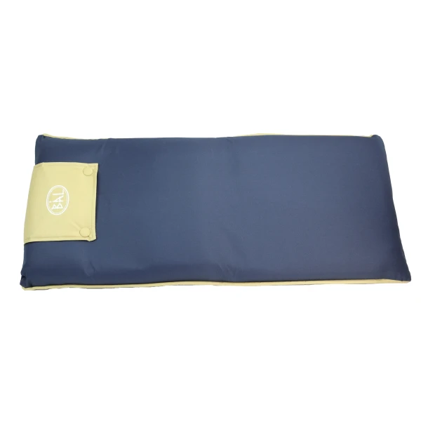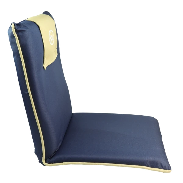 Sammenleggbar sittepute/stol med høy rygg og myk polstring.