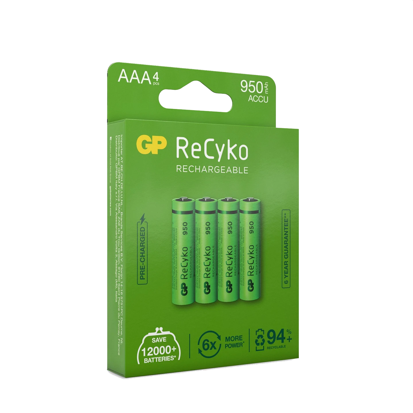 GP ReCyko AAA-batteri, 950mAh, 4-pk – Oppladbart NiMH 1,2v