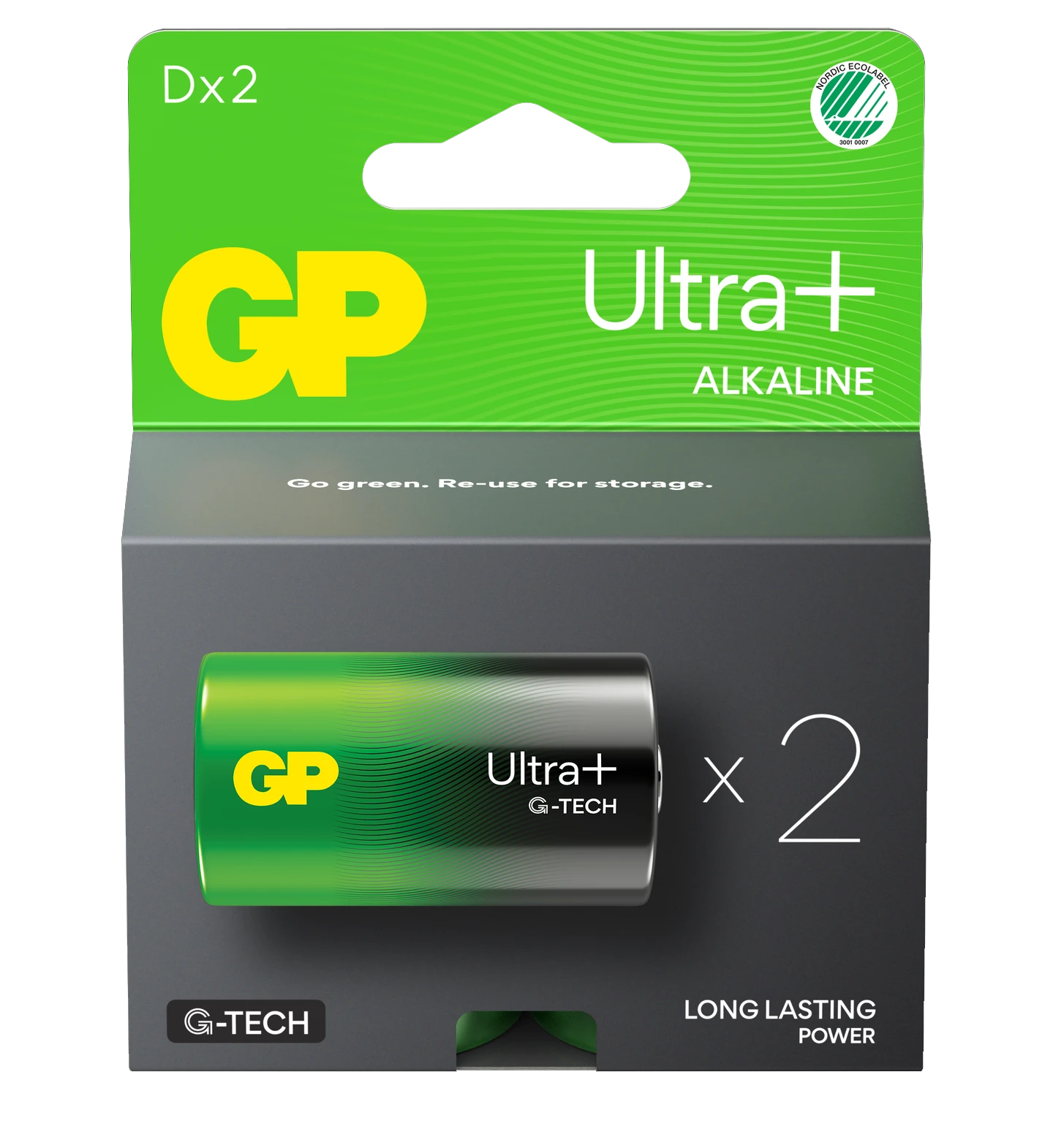 GP Ultra+ Alkalisk batteri 1,5v D 2pk – 13AUP/LR20