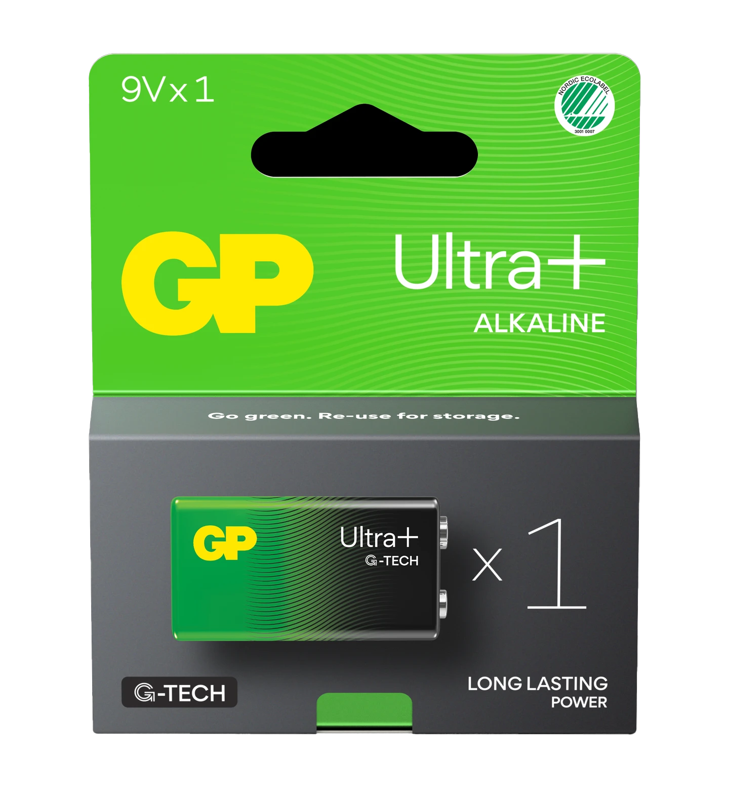 GP Ultra Plus er en av markedets kraftigste alkaliske batteriserier. De passer for de mest strømkrevende enhetene, som dørlåser, alarmer, kraftige lykter og mye mer. Batteriene leverer jevn energi over en lengre periode, noe som gir både rimeligere driftskostnad over tid og mindre avfall. Patentert design for å forhindre lekkasje, og ny, lekker og miljøriktig emballasje helt i papir.Batteriserien er Svanemerket. LR6LF 9v passer bla. til røykvarslere, alarmsensorer, måleinstrumenter mv.