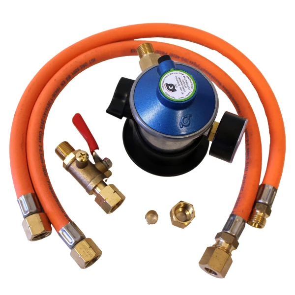 Komplett gassregulatorsett for fast montering i båt, hytte og caravan.