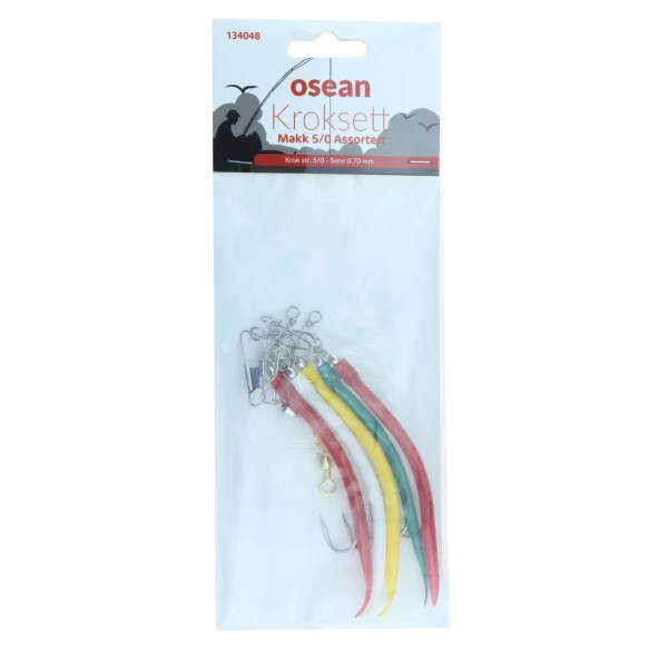 Kroksett til fiskeharpe med 5 stk gummimakk/krok 5/0