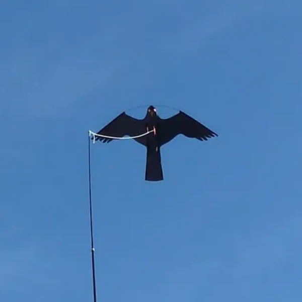 Effektiv måke/fugleskremsel. Beveger seg naturlig i vinden. Denne fuglen (dragen) flyr i lite vind og er i konstant bevegelse. Er effektiv mot de fleste fuglearter som måker, kråker, ender, duer, osv. Produktet består av et , 6 meter lang teleskopstang, line og en fugl/drage. Testet på flere bryggeanlegg med kjemperesultater. Pr i dag det mest effektive produktet mot plagsomme fugler.