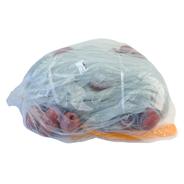 MAKRELLGARN 3mm PP line flat ved bunn,topp og sider. Påsatt 25 stk 4″ eggformede flottører.Blyfri synkeline 5kg/100mLengde 27,5mDybde ca.4m
