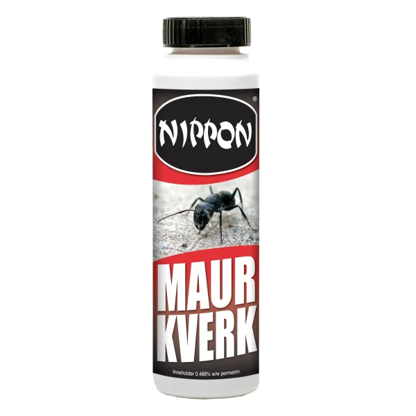 Nippon Maurkverk Effektiv mot maur, veps, kakerlakker, skrukketroll, biller, sølvkre o.l.Leveres i 150gr plast strøflaske Aktiv substans: Permetrin