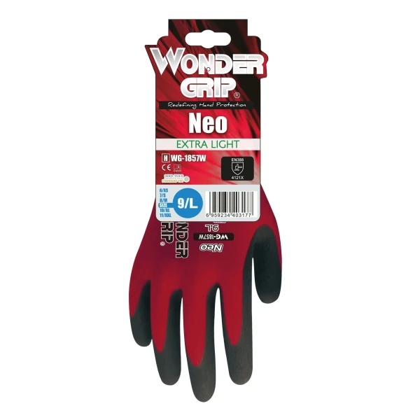 Nitrilbelagt monteringshanske i tettved nylon og spandex. WonderGrip teknologien sørger