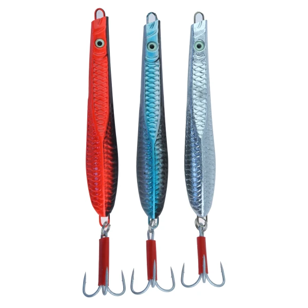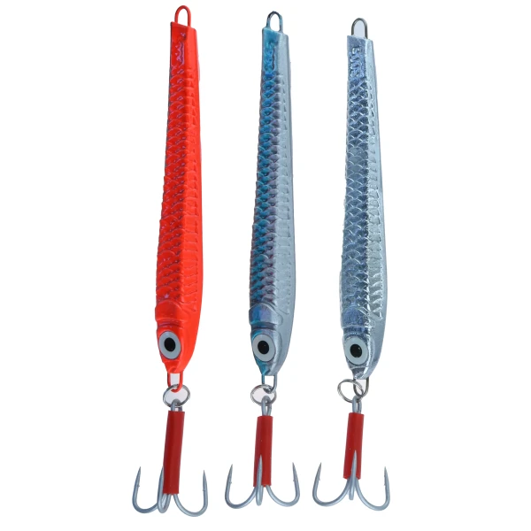 Sett med 3 stk pilk i fargene Sølv/Blank, Blå/Sølv og Svart/Rød. Finnes i 3 vektklasser, og leveres med treblekrok m/rød slange.