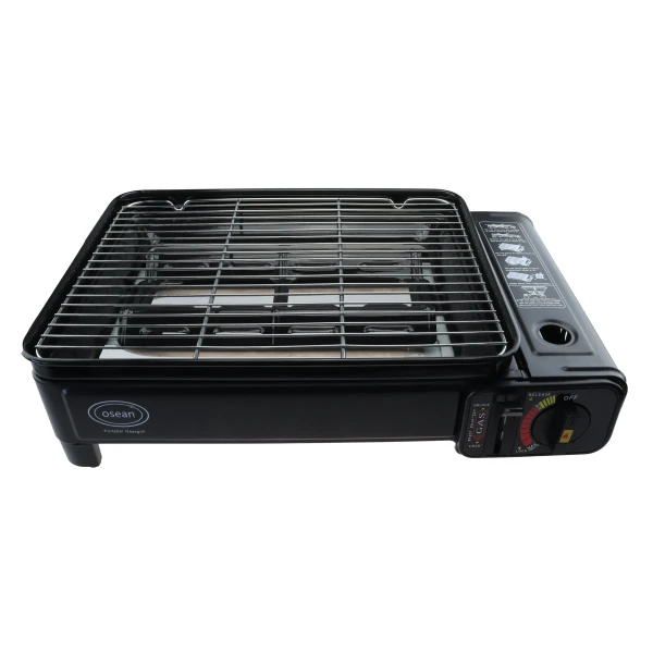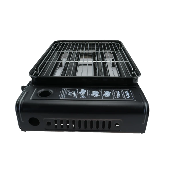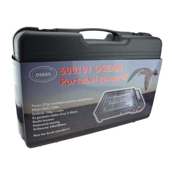 Portabel gassgrill i minikjøkken-format. Bruker standard ventilboks (varenr. 600100), som også passer til gassovn, blåselampe, minikjøkken etc. (gassboks medfølger ikke)