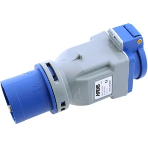 Overgangskabel fra vanlig stikkontakt (Schuko han plugg) til blå CEE 3-pin hun. For tilkobling av nyere landstrømskabel til vanlig stikkontakt. 3×2,5mm kabel. IP44