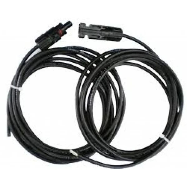 PV Kabel til solcellepaneler (stiv kvalitet)God kvalitet og lav motstand10mtr2x6mm2MC4 kontakter montert i den ene endenBrukes til å koble solcellepanel til regulatoren. Stiv kabel er egnet til montering i hytte.
