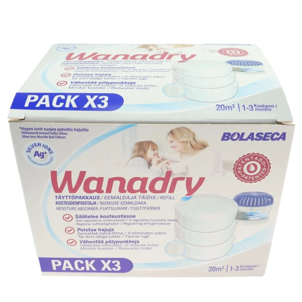 Refillpk med 3 stk fuktsluker tabletter til 702020 og andre fuktslukere. Kan også plasseres på rist over en bøtte.