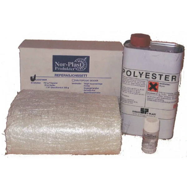Inneholder 750g polyester, 20gr herder og 1 m2 glassfiberduk 300gr.