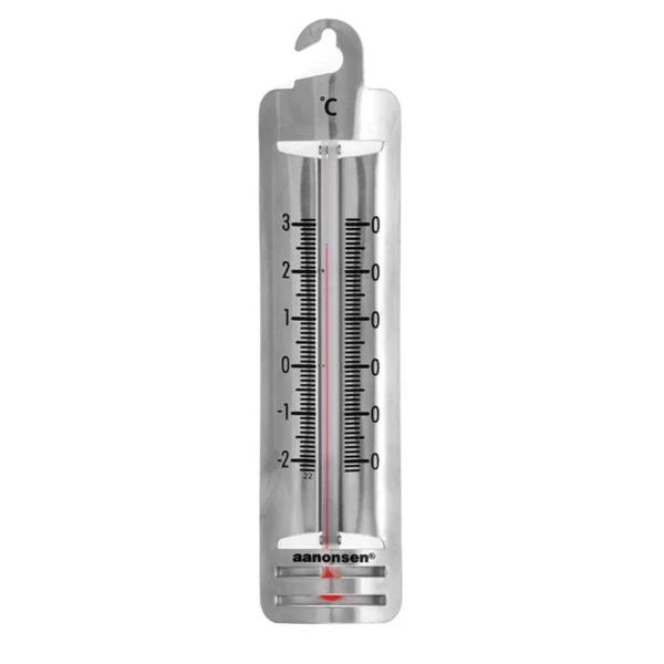 Termometer beregnet for kjøleskap og fryseboks. Laget i rustfritt stål.