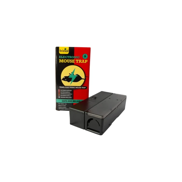 Trinol elektronisk musefelle, for innendørs bruk. Enkel å rengjøre og er sikker og pålitelig med lang batterilevetid.Bruker 4 stk AA batterier (ikke inkludert).1. Plasser lokkematen ved å åpne lokket og legge den mellom den bakerste metallplaten og fellens bakplate og åpne døren ved fellens inngang.2. Pass på at apparatet er slått av og sett inn 4 x AA-batterier.3. Plasser fellen på ønsket sted langs en vegg med inngangen til fellen parallelt med veg-gen. Åpn døren ved fellens inngang.4. Slå på fellen; den grønne lampen blinker én gang, deretter blinker den røde lampen og fellen er klar til bruk.Beregnet for bruk innendørs. Unngå kontakt med døde skadedyr. Enkel å rengjøre. Sikker og pålitelig med lang batterilevetid. Indikasjon ved lavt batterinivå. Må ikke brukes i våtrom eller i forbindelse med vann. Plasseres utenfor rekkevidde for barn og kjæledyr.Batterier og DC 6V, 1A adapter er ikke inkludert. Feil bruk av produktet kan føre til elektrisk støt eller alvorlig personskade. Oppbevares utilgjengelig for barn, kjæledyr og brennbare materialer.Må ikke anvendes i nærheten av brennbare gasser, brannfarlige væsker eller tørt brennbart materiale, som kan forårsake brann eller eksplosjoner. Bruk aldri produktet på våte overflater, ellers kan du få elektrisk støt.Dette produktet er et elektrisk produkt – ikke berør metallplatene når apparatet er slått på. Hold apparatet unna væsker. Hold pacemakere og andre livsopprettholdende apparater minst 30 cm unna.Kontakt legen hvis du får elektrisk støt.
