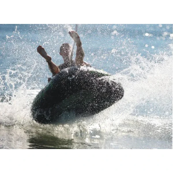 Solid trekant-tube for 1 person. Leveres komplett med 12V elektrisk pumpe og slepetau på 18 meter.