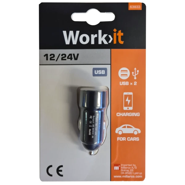 USB lader med 2 uttak, for 12-24 v sigarettenner uttak
